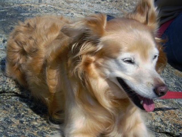 praia. Pequeninha, imunda e apesar da luxação em uma das patas, sorridente.